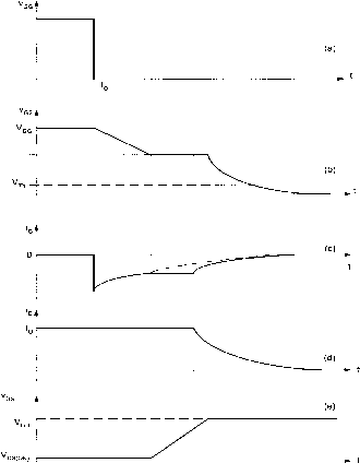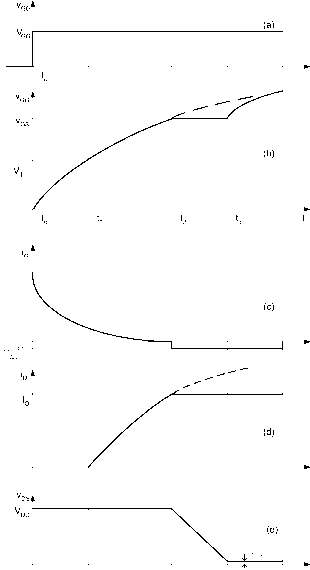 (6.29) At t = to, the gate voltage igg(0 is reduced to zero as shown in Fig. 6.21a. The equivalent circuit at t > tg is shown in Fig. 6.22a. We assume that the drain-to-source remains constant while C(3s and C(3d are discharging through Rq as governed by the foUowing relations. ![]() to tl *2 *3 V FIGURE 6.21 Turn-on switching waveforms. - Cos + Cgd As Vy)s is assumed constant, then Iq becomes = (Cgs + Cgd)- Hence, evaluating for Vq for t > tg, we obtain Where (6.30) (6.31) %s(o) = %g - (gs + gd)g As Vq continues to decrease exponentially, drawing current from Cqy), it wiU reach a constant value at which drain current is fixed, that is, Ip, = Iq. From the input transfer characteristics, the value of Vq, at which 1, = Iq, is given by 0 , ТГ gs = - + Th (6.32) The time interval At = h ~ h t)e obtained easily by setting Eq. (6.31) to Eq. (6.32) at t= tj. The gate current during the t2 < t < t is given by (6.33) Because for t2 - t the gate-to-source voltage is constant and equals %s(i = o/Sm + Th s shown in Fig. 6.21b, then the entire gate current is being drawn from С^ and Iq = C( d(vgs - ds) dds - -gd ![]() ![]() ra/w + VGS = i+V ![]() (c) (d) FIGURE 6.22 Equivalent circuits: (a) < < i; (b) < < (c) t2 < t < ty, and (d) < t < t. Assuming Iq constant at its initial value at t = t, that is, At t = the drain-to-source voltage becomes equal to yj)D forcing D to turn-on as shown in Fig. 6.22c. The drain-to-source current is obtained from the transfer - -- - - I--h Rn Rr g \6m characteristics and given by Integrating both sides of the preceding equation from to t i (t) - cr (v - V ) With idsci) = -DS(ON) we obtam I / J \ Where igs(0 is obtained from the following equation: VDs(t) = DS(ON) + - + Th - 1) (6.34) GGD \Sm / hence v charges linearly until it reaches У^- (6.35) Integrating both sides from 2 to t with vq(t2) = + Th we obtain the foUowing expression for vq(t), %sW=(+Oe-(-)/ (6.36) Hence the gate current and drain-to-source current are given by, iG(t)(+V-i-y (6.37) Ds(0 = grnVThie-- - 1) + loe-- (6.38) The time interval between 2 < t < % is obtained by evaluating iGs(%) = Th which the drain current becomes approximately zero and the MOSFET turn-off. As a result, we have %s(%) = Th As the drain-source voltage starts increasing, the device starts leaving the on-state and enters the saturation (linear) region. During the transition time the device exhibits large voltage and current simultaneously. At higher drain-source voltage values that approach the avalanche breakdown it is observed that power MOSFET suffers from a second breakdown phenomenon. The second breakdown occurs when the MOSFET is in the blocking state (off) and a further increase in i;j)s ill cause a sudden drop in the blocking voltage. The source of this phenomenon in MOSFET is caused by the presence of a parasitic n-type bipolar transistor as shown in Fig. 6.24. The inherent presence of the body diode in the MOSFET structure makes the device attractive for applications in which bidirectional current flow is needed in the power switches. Todays commercial MOSFET devices have excellent high operating temperatures. The effect of temperature is more prominent on the on-state resistance as shown in Fig. 6.25. As the on-state resistance increases, the conduction losses also increase. This large DS(OW) limits the use of the MOSFET Solving for А^з2 = % - 2, we obtain А%2 = % - t2 = т1п( 1 + (6.39) For t > %, the gate voltage continues to decrease exponentially to zero, at which the gate current becomes zero and С^ charges to - Vdd- Between % and t, Ip, discharges to zero as shown in the equivalent circuit Fig. 6.22d. The total turn-off time for the MOSFET is given by t,ff = Atio + At2i + А%2 + At43 At2i + At32 (6.40) The time interval that most affects the power dissipation are atoi and at9. It is clear that in order to reduce the MOSFET ton and toff times, the gate-drain capacitance must be reduced. Readers are encouraged to see the reference by Baliga [1] for detaUed discussion on the turn-on and turn-off characteristics of the MOSFET and to explore various fabrication methods. 6.6.4 Safe Operation Area The safe operation area (SOA) of a device provides the current and voltage limits the device must be able to handle to avoid destructive faUure. Typical SOA for a MOSFET device is shown in Fig. 6.23. The maximum current limit whUe the device is on is determined by the maximum power dissipation. diss,ON - DS(ON)DS(ON) (6.41) Max power ![]() Second breakdown limit Voltage limit CE,max FIGURE 6.23 Safe operation area (SOA) for MOSFET. Drain Gate npn BJT Source FIGURE 6.24 MOSFET equivalent circuit including the parasitic BJT. 1 ... 6 7 8 9 10 11 12 ... 91 |